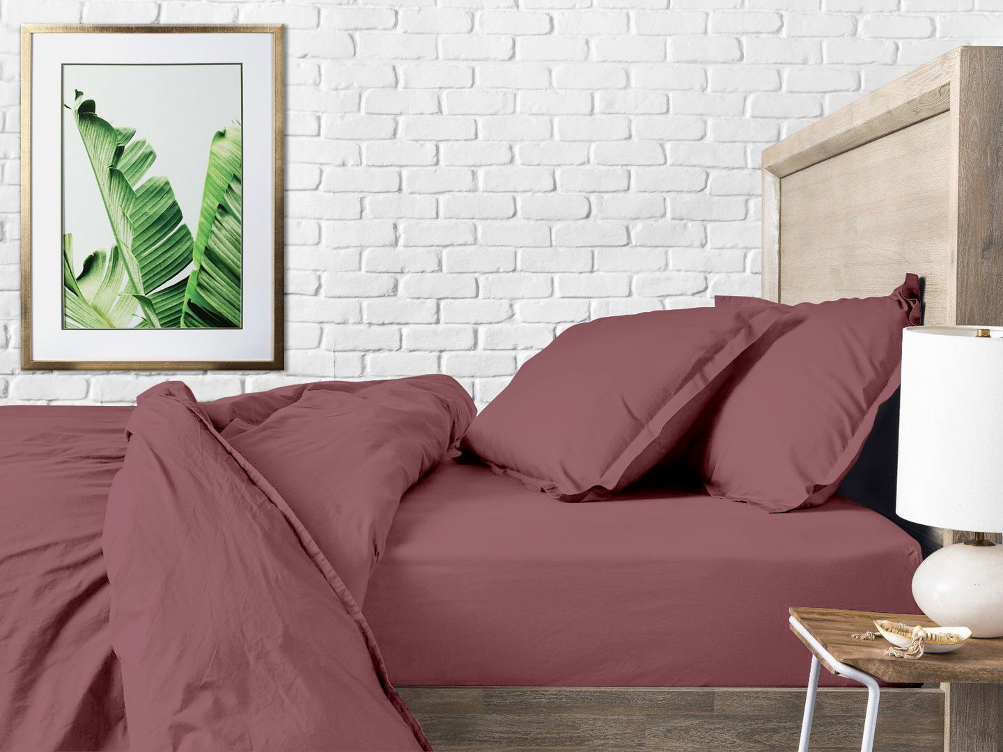 Двухспальная постель с простыней на резинке Blueberry CS1 COSAS Сливовый 180х220 см