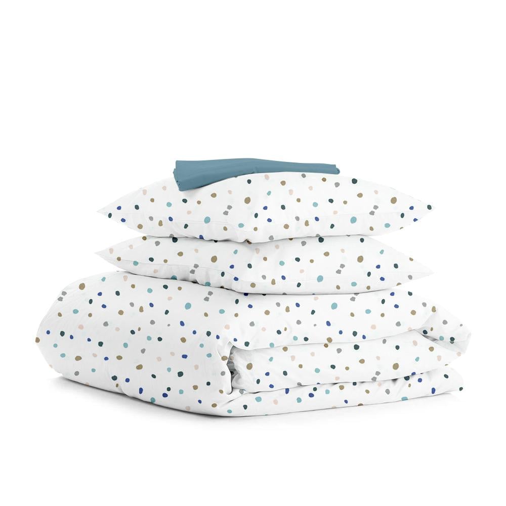 Двуспальный комплект на резинке COSAS COLOR BLOTS CS5 Ранфорс 180х220 см Белый/Синий