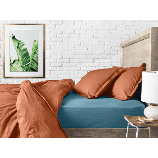 Евро постель с простыней на резинке Amber COSAS Терракотовый 200х220 см