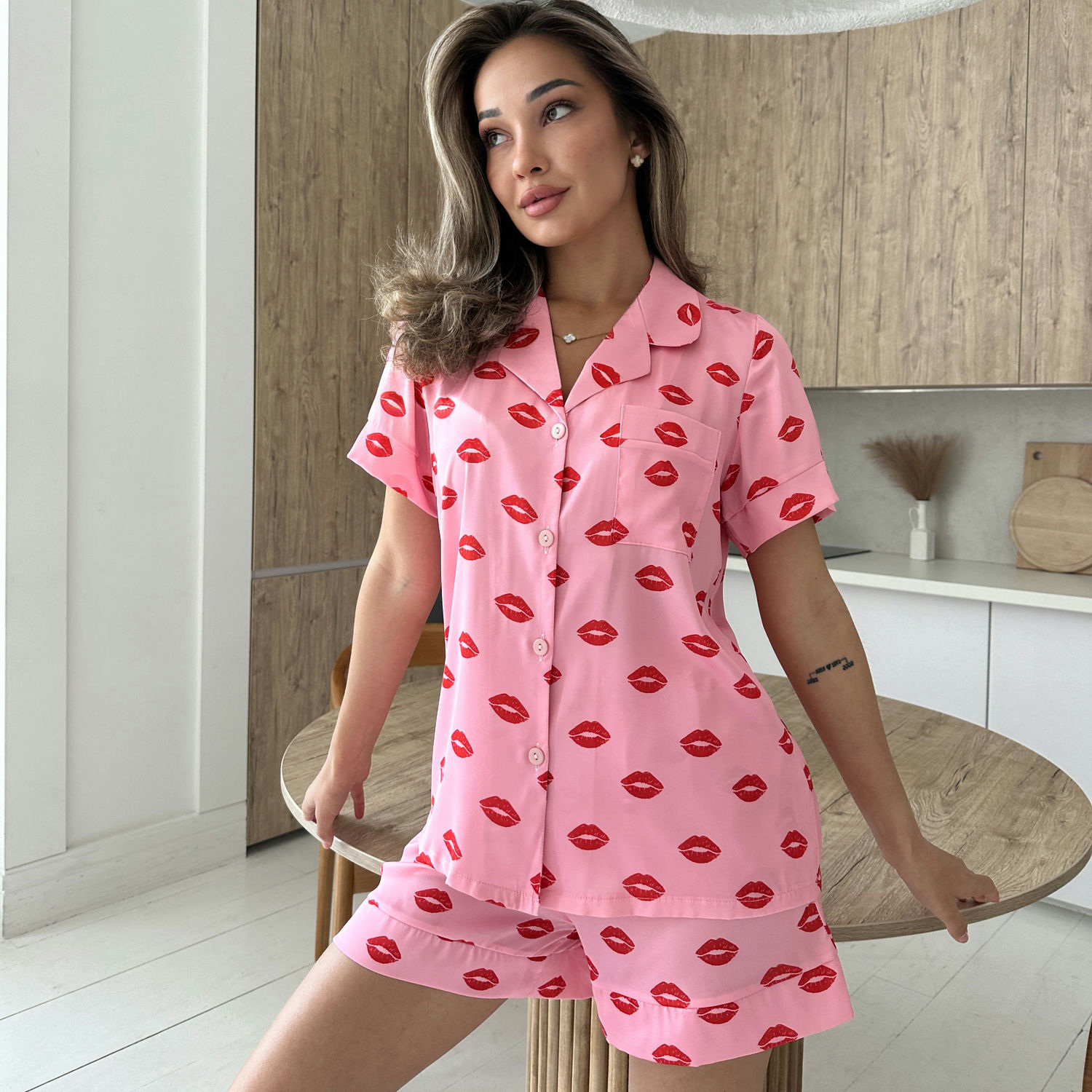 Женский комплект пижамы Heartbeat – нежность, стиль и комфорт! Heartbeat – изысканный женский комплект для сна, сочетающий элегантность и легкость. Если вы ищете идеальный дамский комплект для сна и домашнего отдыха, этот вариант станет вашим любимым! Гладкая, приятная на ощупь ткань дарит ощущение нежности, а легкий блеск придает роскошь и изысканность. Что входит в комплект женской пижамы? Рубашка свободного кроя – стильный фасон, красиво садящийся по фигуре, подчеркивая ее утонченность. Шорты на высокой посадке – идеальная посадка и комфортный свободный крой, не ограничивающий движения. Преимущества женской пижамы Heartbeat: Роскошный вид – глянцевая шелковая ткань создает эффект дорогого, изысканного белья. Комфорт и легкость – мягкая, невесомая ткань приятно окутывает тело, обеспечивая максимальный комфорт в теплое время года. Универсальность – это женский комплект подходит для сна, домашнего отдыха, романтических моментов. Удобный крой – шорты на высокой посадке отлично подчеркивают фигуру, не ограничивая свободу движений. Не сковывающий движений – идеальный вариант для комфортного отдыха дома. Прекрасный подарок – роскошный и практичный женский комплект для сна станет отличным подарком для мамы, сестры, подруги или любимой. Как ухаживать за комплектом Heartbeat? Стирать вручную или при температуре до 30°C в щекотливом режиме. Не использовать агрессивные моющие средства и отбеливатели. Сушить естественным способом, избегая пересушивания. Гладить при низкой температуре или использовать отпариватель.