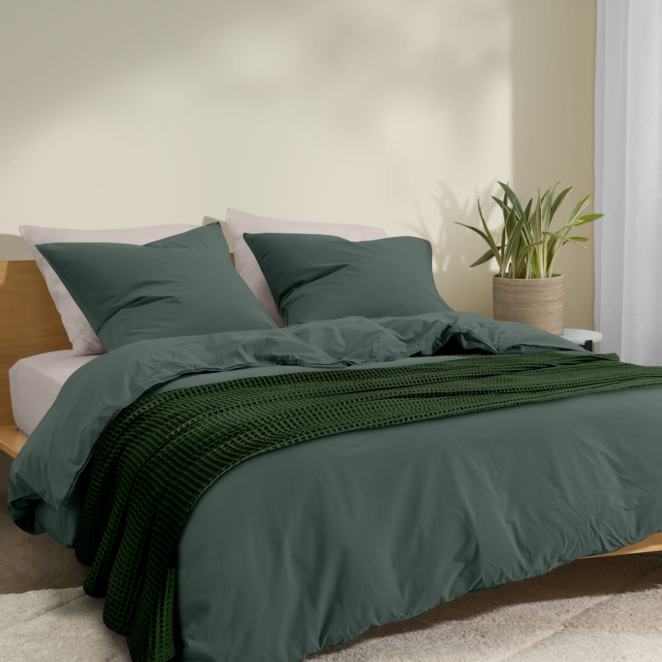 Подробные характеристики Плед-покрывало вафельное COSAS 200х220 см Basil Greek Waffle Изумрудный.