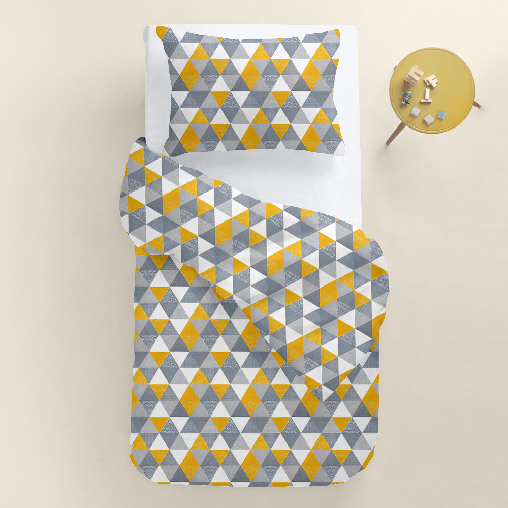Подробные характеристики Подростковая постель с простыней на резинке TRIANGLES Cosas желтый 160х220 см.