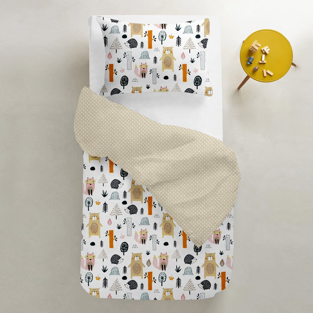 Подростковый комплект на резинке COSAS FOREST Ранфорс 155х215 см. Разноцветный/Белый