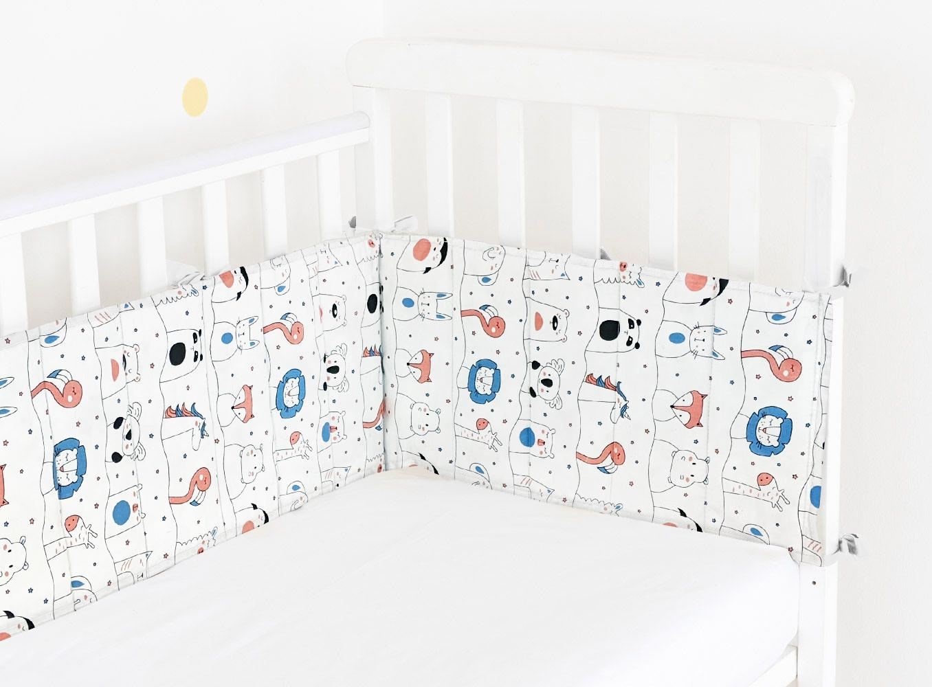 Бортики на ліжечко COSAS ANIMALS WHITE Ранфорс 30х180 см Білий
