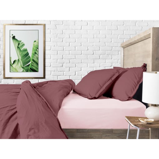 Двоспальна постіль з простирадлом на гумці Blueberry COSAS Сливовий 180х220 см