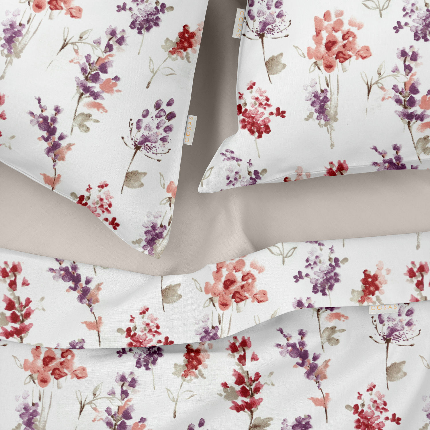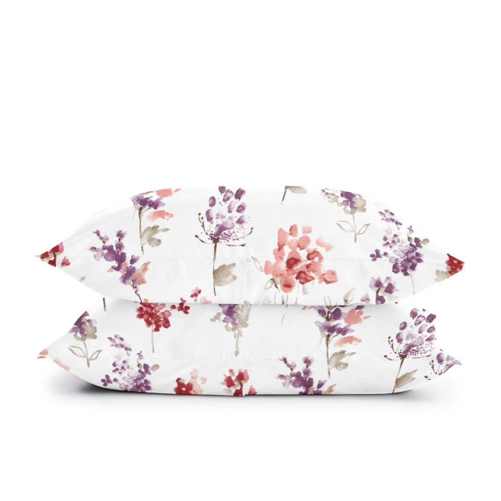 Двоспальна постіль з простирадлом на гумці WATERCOLOR FLOWERS CS1 COSAS Фіолетовий 180х220 см