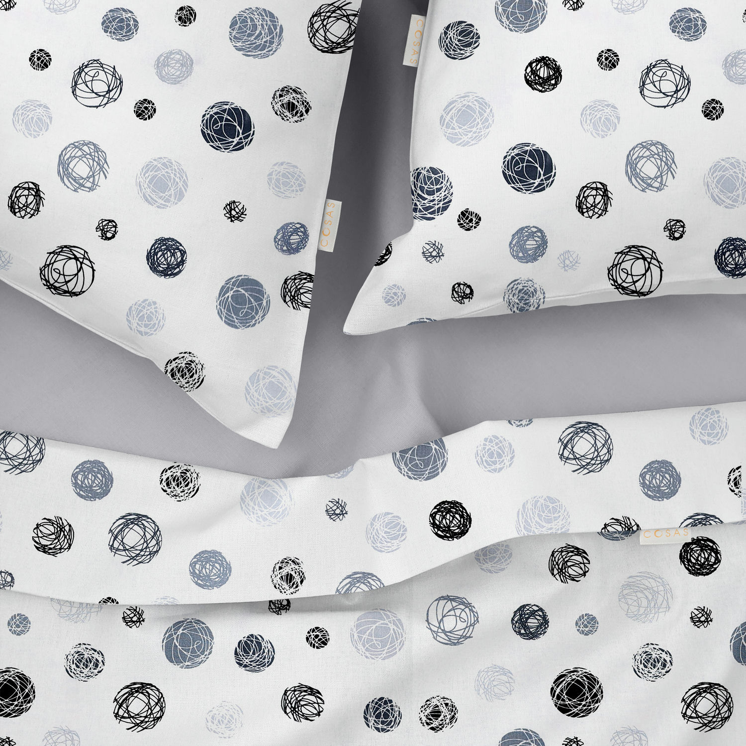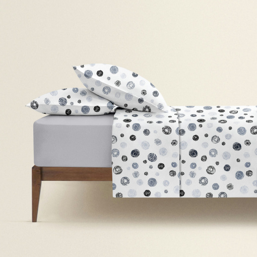 Двоспальна постіль з простирадлом на гумці Yarn Balls COSAS сірий 180х220 см