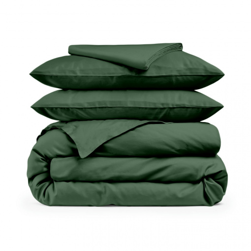 Двоспальна постіль сатин з простирадлом на гумці GREEN Cosas Зелений 180х220 см