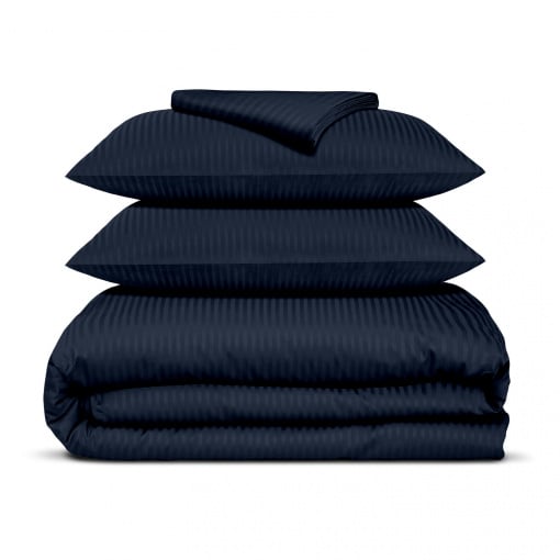 Двоспальна постіль сатин з простирадлом на гумці NAVY Cosas Синій 180х220 см