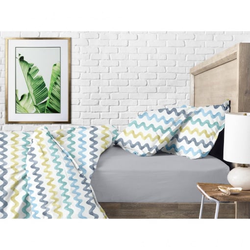 Євро постіль з простирадлом на гумці Color Wave CS1 COSAS Білий 200х220 см