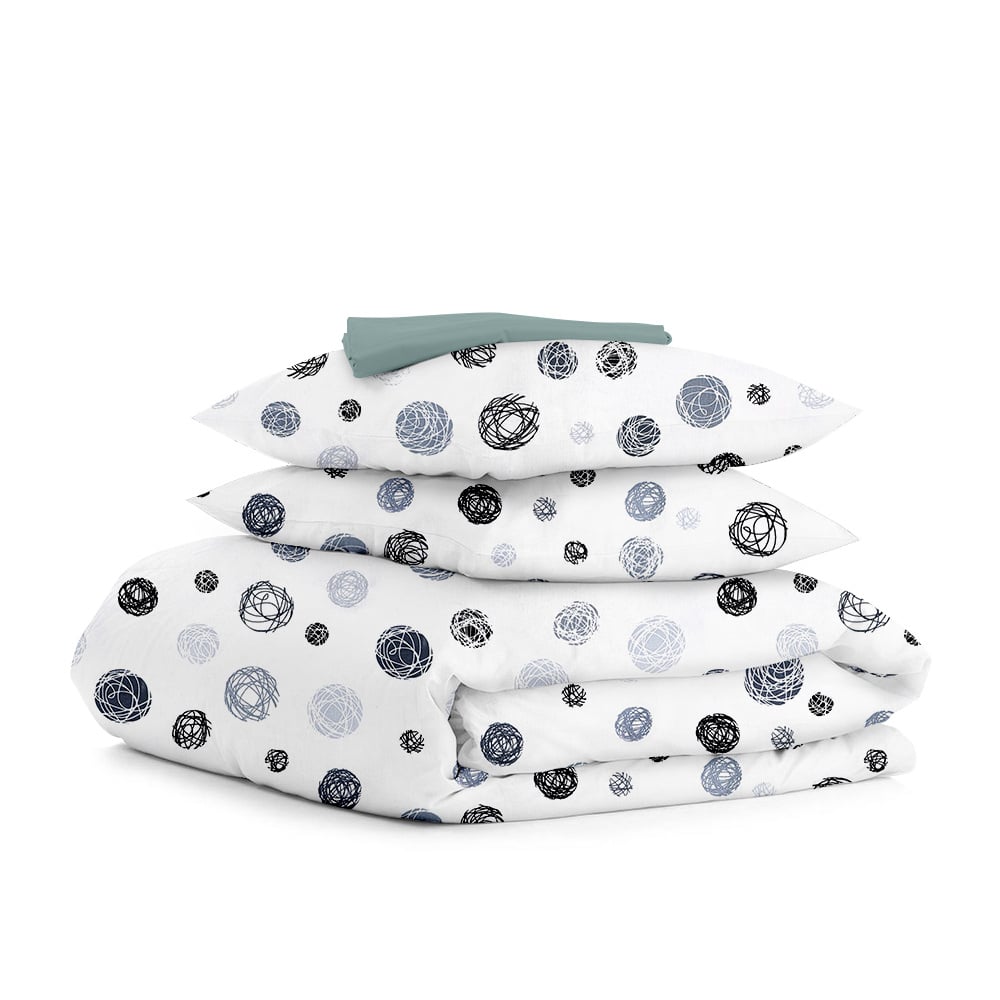 Євро постіль з простирадлом на гумці Yarn Balls CS6 COSAS сірий 200х220 см