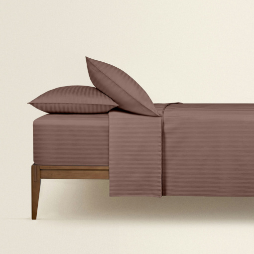 Євро постіль сатин з простирадлом на гумці LATTE Cosas Коричневий 200х220 см