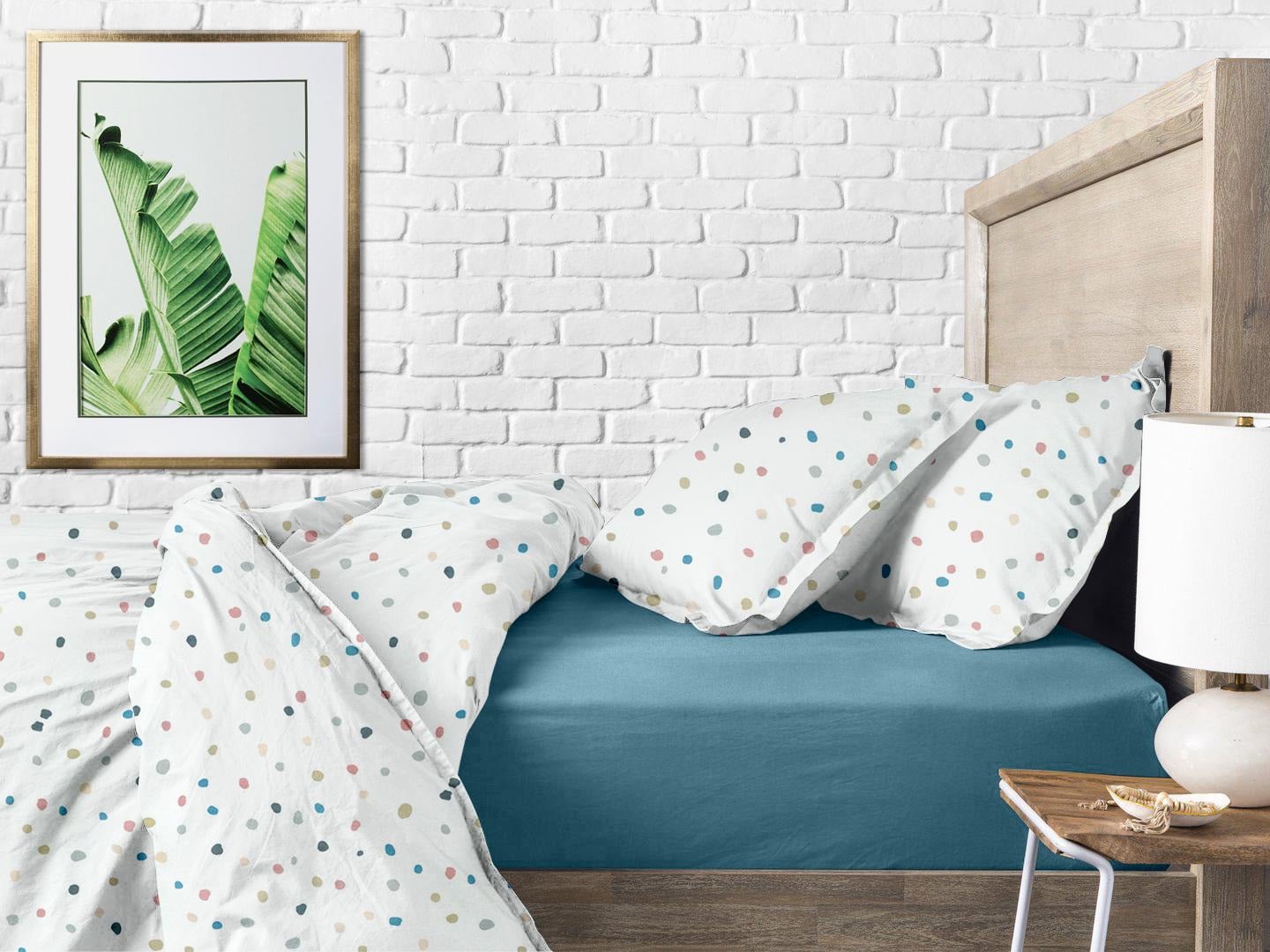 Набір простирадла на резинці COSAS SKY / COLOR BLOTS Ранфорс 90х200х20 см 2 шт Бірюзовий/Білий