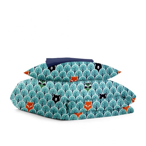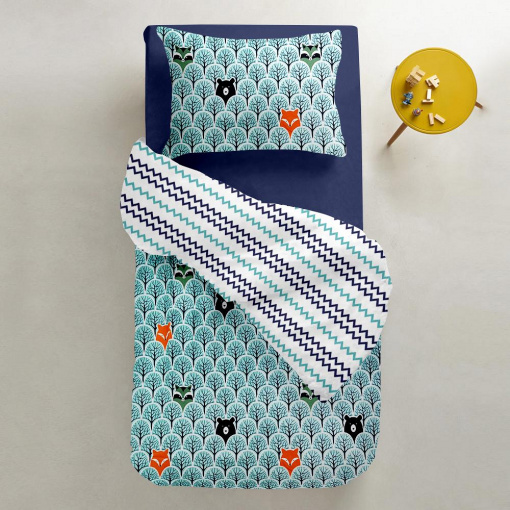 Підліткова постіль з простирадлом на гумці WOOD BEAR COSAS бірюзовий 155х215 см