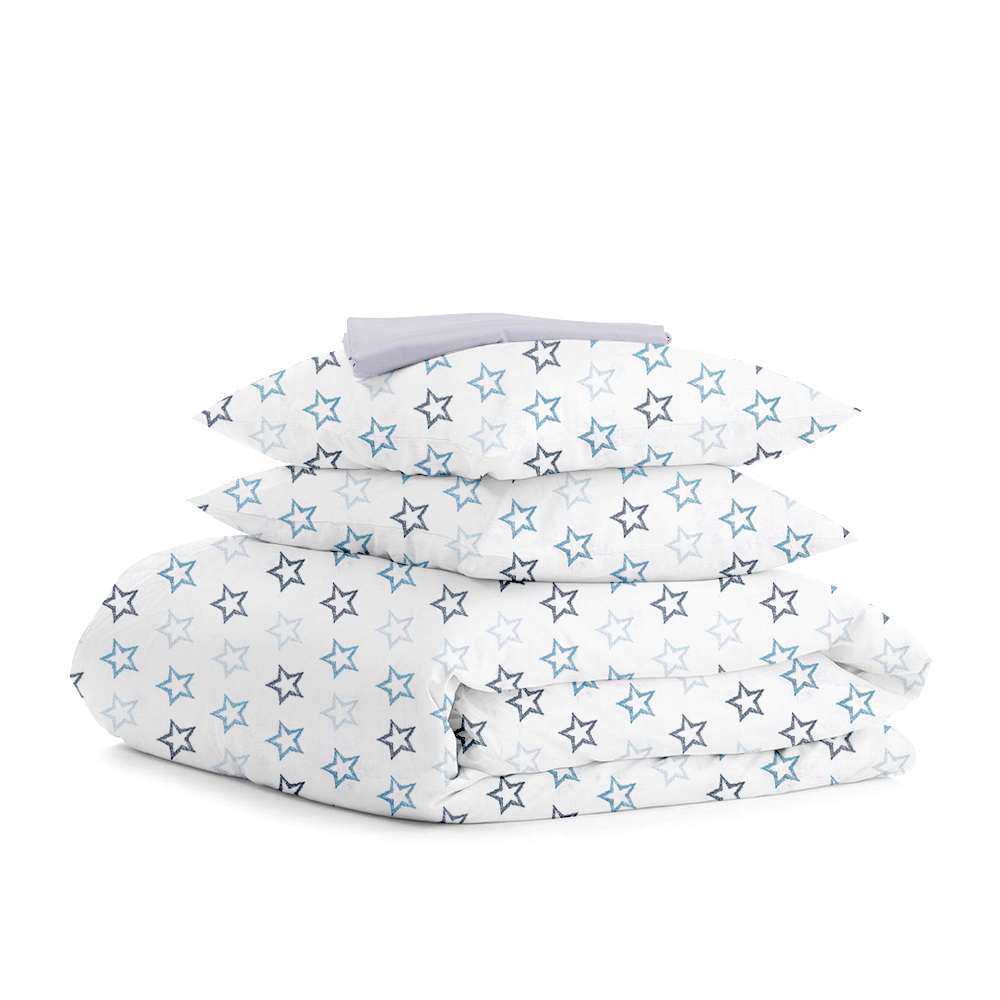 Полуторна постіль з простирадлом на гумці Clear Stars Cs1 COSAS Блакитний 160х220 см