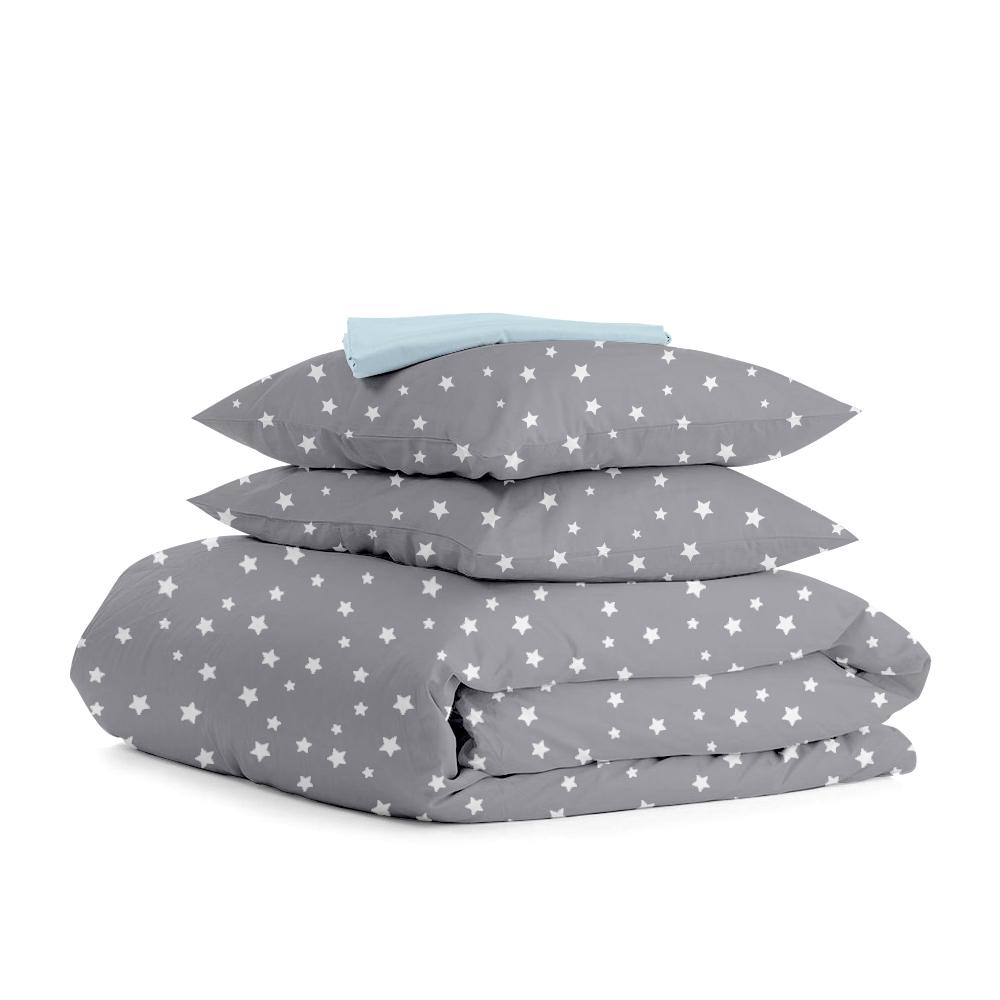 Полуторна постіль з простирадлом на гумці Grey Stars CS7 COSAS сірий 160х220 см