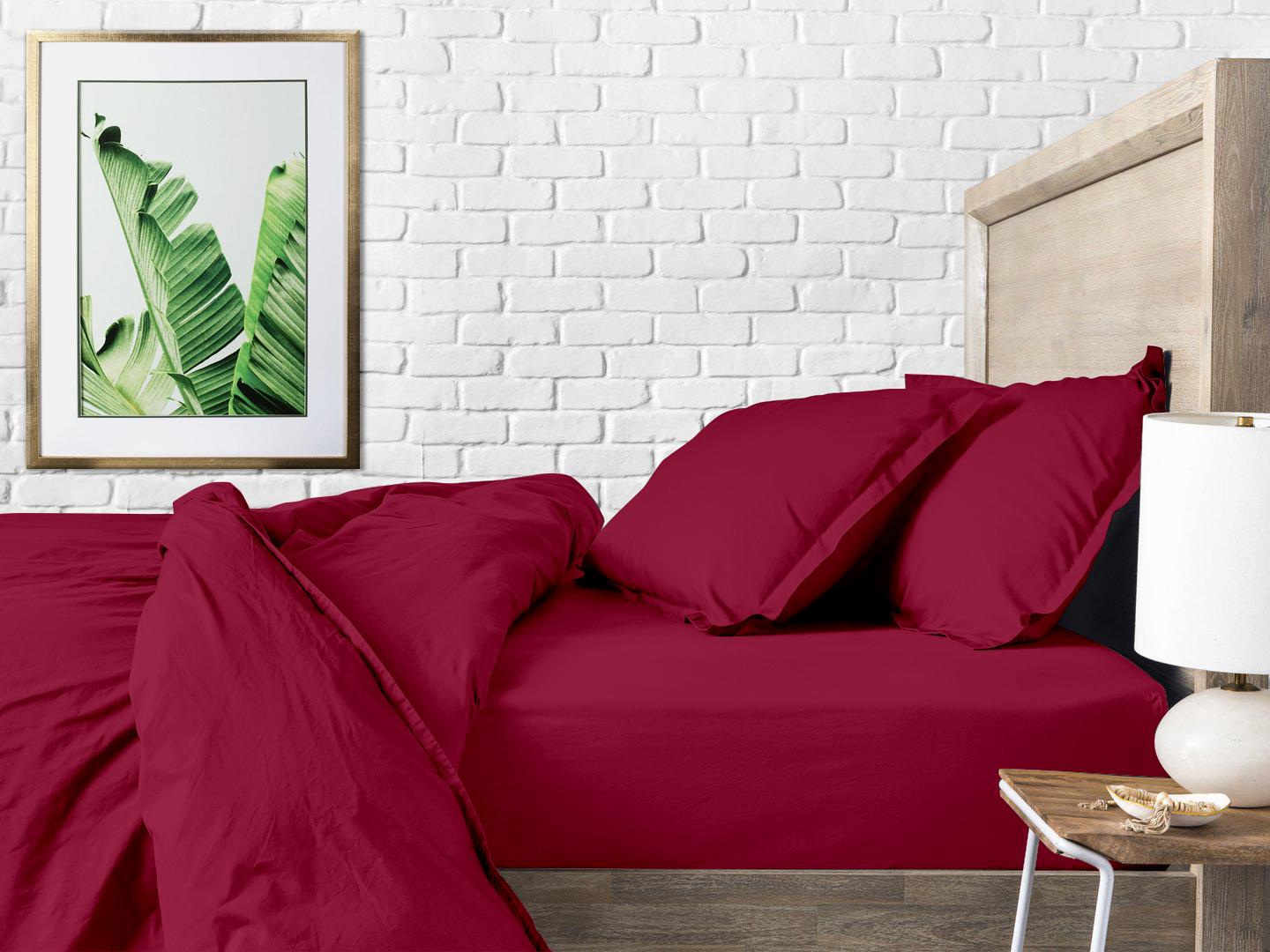 Простирадло на резинці COSAS RUBY Ранфорс 90х200х20 см Бордо