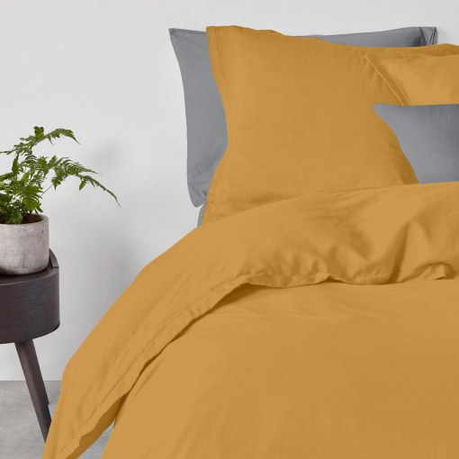 Сімейна постіль з простирадлом на гумці Curcuma CS1 COSAS Гірчичний 2х160х220 см