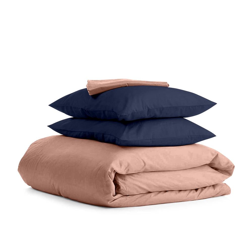 Сімейний комплект COSAS BEIGE SATIN CS3 2х160х220 см Синій/Кавовий