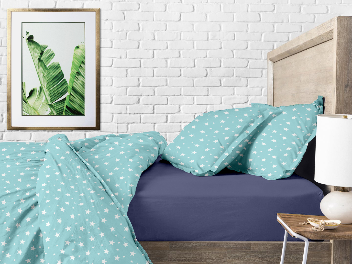 Сімейний комплект на резинці COSAS MINT STARFALL CS1 Ранфорс 2х160х220 см М'ятний