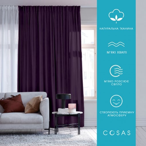 Штори на кухню та кімнату INK 2шт Cosas Фіолетовий 180х270 см