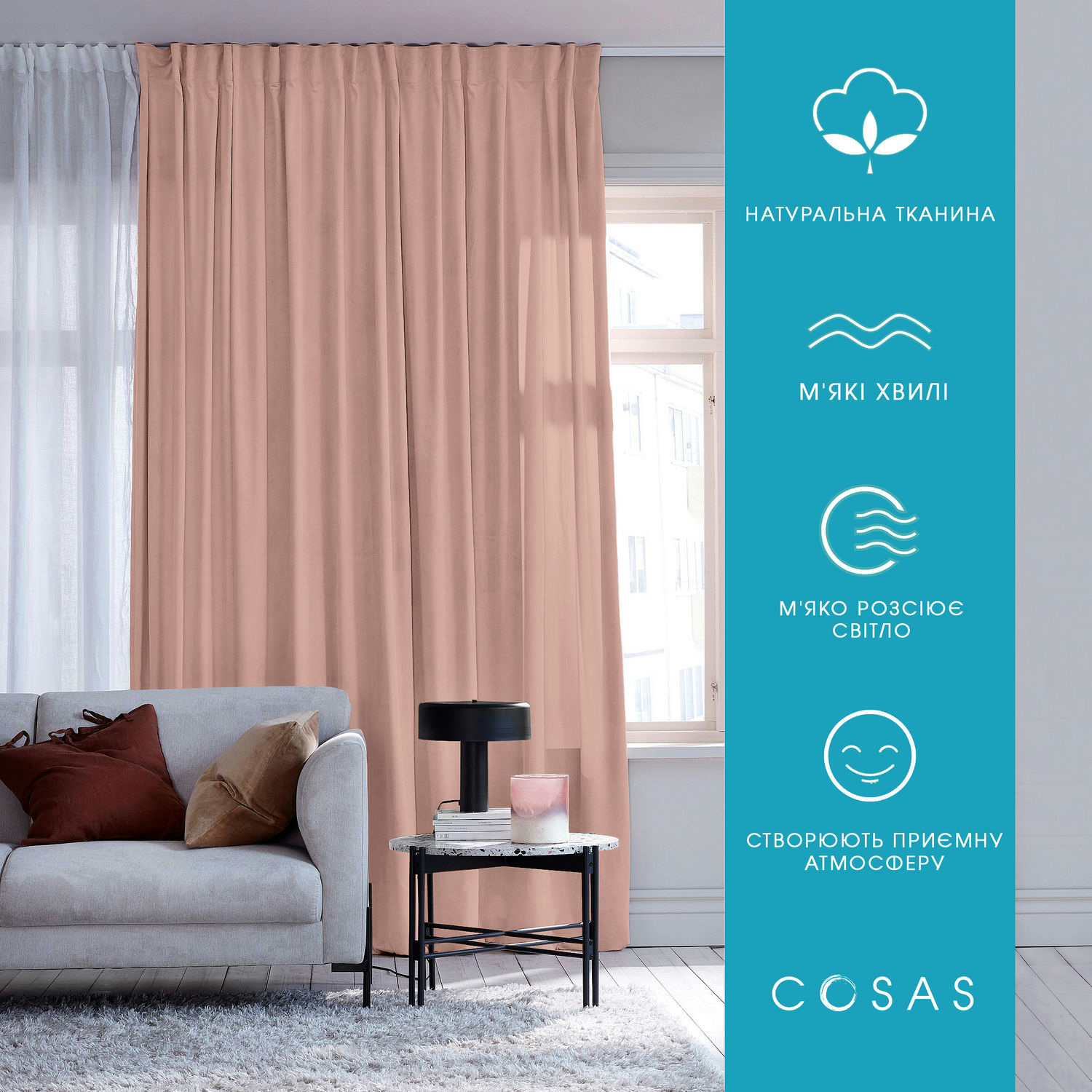 Розмір та склад "Комплект штор COSAS": штора COSAS 180х270см – 2 шт. Матеріал з якого виготовлені штори COSAS – 100% органічна бавовна, країна походження Туреччина має сертифікат якості Oeko-Tex. Штори COSAS добре пропускають свіже повітря, не блокують світло, в той же час добре поглинаючи сонячні промені, мають показник пропуску світла 50-75%. Однотонні штори COSAS підкреслять загальний стиль приміщення, візуально розширять вікно та збільшать висоту стелі. Ви можете комбінувати штори з іншими елементами декору , що додасть приміщенню неповторного завершеного стилю. При виборі кольору штор необхідно враховувати, на який бік виходять вікна. Якщо вікна виходять на південну сторону, краще вибирати холодні спокійні кольори штор, щоб компенсувати надлишок світла, а якщо на західну та північну підійдуть теплі тони. Комплект штор COSAS складається із 2 штор. Штори мають тасьму з петлями для фіксації та рівномірного складання. Створіть стильне приміщення із текстилем COSAS! Комплект штор упакований у фірмову картонну коробку, що також підійде на подарунок. Комплект штор COSAS стане лаконічним доповненням до декору вашого будинку.