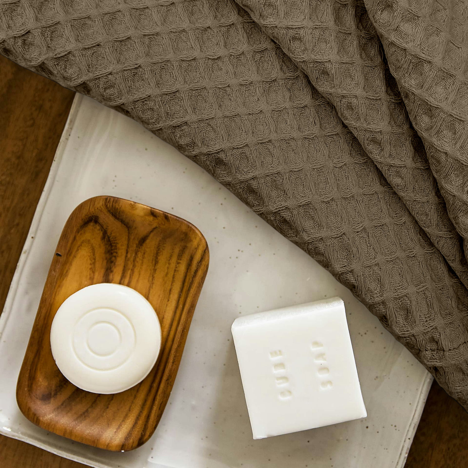 Вафельні рушники COSAS Dusty Greek Waffle Шоколадно-пісочний 2 шт