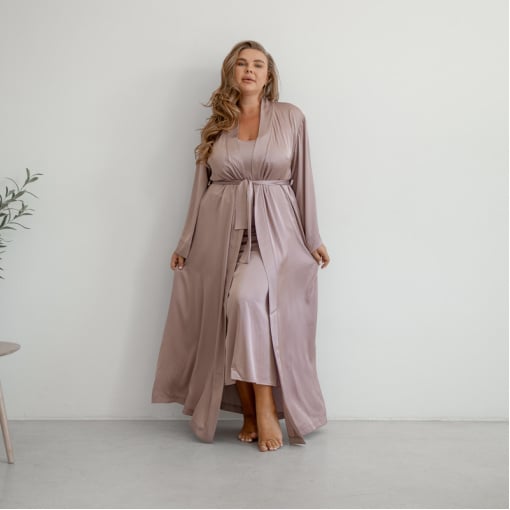 Жіночий шовковий халат Silky Cloud – ідеальне поєднання стилю та комфорту! Відчуйте справжню ніжність із жіночим шовковим халатом Silky Cloud, створеним для елегантності та комфорту. Виготовлений з якісного шовку, цей довгий жіночий халат дарує приємні відчуття на шкірі, красиво спадає та підкреслює фігуру. Переваги жіночого шовкового халата Silky Cloud: Розкішний матеріал – шовкова тканина халат м’яка, гладенька, приємна до тіла, не електризується та не втрачає блиску після прання. Максі-довжина – довгий шовковий халат вишукано облягає силует, надаючи особливого шарму та грації. Ідеальний крій – халат має довгі широкі рукави та зав’язується поясом, що дозволяє регулювати посадку за бажанням. Підкреслює фігуру – приталений фасон вигідно виділяє талію, створюючи жіночний та елегантний образ. Чудово поєднується з нічною сорочкою – ідеальний комплект для сну та домашнього відпочинку. Дихаюча тканина – натуральний шовковий халат чудово пропускає повітря, забезпечуючи комфорт у будь-яку пору року. Кому підійде жіночий шовковий халат Silky Cloud? Для жінок, які цінують якісні шовкові халати для дому. Для створення елегантного образу вранці та ввечері. Як вишуканий подарунок – жіночий халат з шовку стане чудовим презентом для дружини, мами, подруги чи нареченої. Як доглядати? Щоб зберегти ніжність і блиск шовкового халата, рекомендується делікатне прання при температурі до 30°C, використання м’яких мийних засобів і природне сушіння.